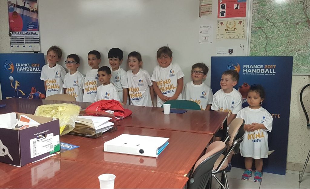 Pour clôturer cette belle saison 2016-2017 les enfants ont eu droit à des rafraichissements et des gâteaux. Ils se sont régalés puis on reçut de beaux tee-shirts à l’effigie du Mondial masculin 2017 de handball. Certains vont changer de groupe à la prochaine saison et oui ils grandissent vite et j’espère bien retrouver les autres à la prochaine saison.